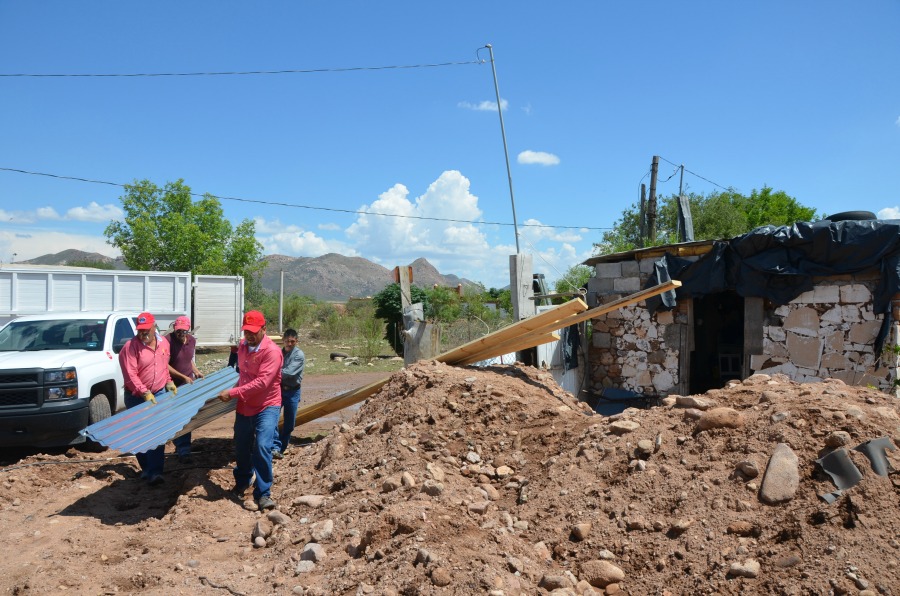 Por instrucciones de la Presidente del DIF Estatal, licenciada Bertha Gómez de Duarte, a temprana hora se inició la evaluación y para las 3 de la tarde habían sido colocados los materiales en techos de viviendas que resultaron dañados.
