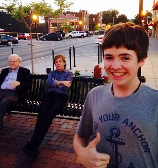 CIUDAD DE MÉXICO, 15 de julio.- Un adolescente consiguió tomarse una “selfie” con Paul McCartney y el CEO Berkshire Hathaway, Warren Buffet,en Omaha, Nebraska, imagen que se ha vuelto viral en redes sociales.