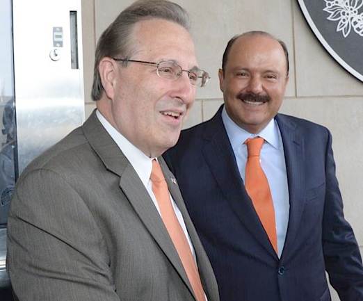 El gobernador del Estado, César Duarte Jáquez, se reunió con el embajador de Estados Unidos en México, Anthony Wayne, a quien le agradeció su apoyo para seguridad, la recuperación del estatus ganadero, intercambio estudiantil y contribución a la certificación de penales entre otros.