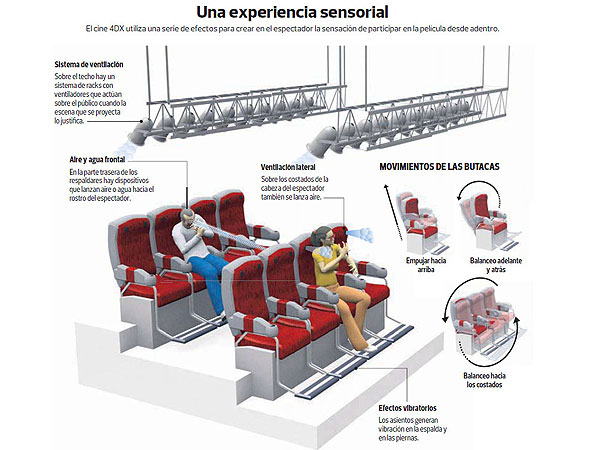 Allí, el espectador no sólo podrá ver una película en tres dimensiones, sino que podrá sentir lo que sucede gracias a efectos de viento y movimiento, así como por olores y hasta salpicaduras de agua….