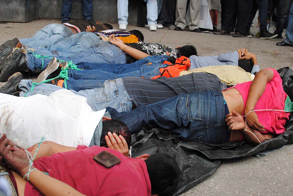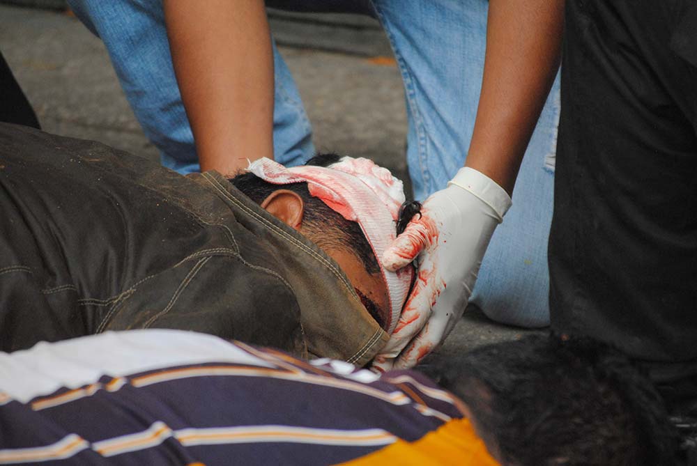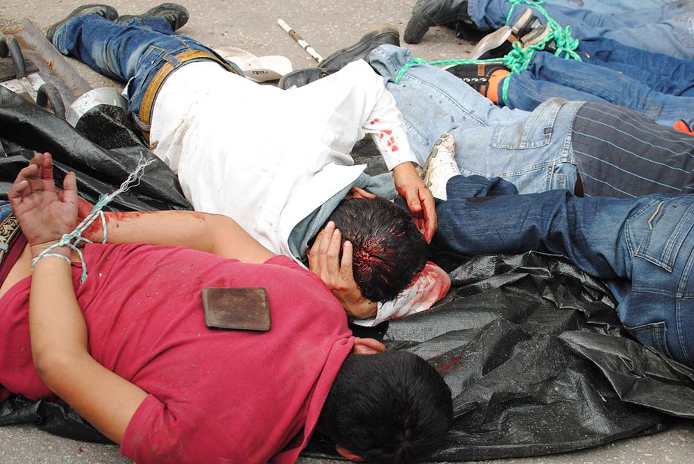 Los heridos, la mayoría de la CETIG, fueron dejados boca abajo y amarrados con las manos hacia atrás en una de las esquinas del zócalo de Chilpancingo, en donde minutos después fueron atendidos por paramédicos de Protección Civil.