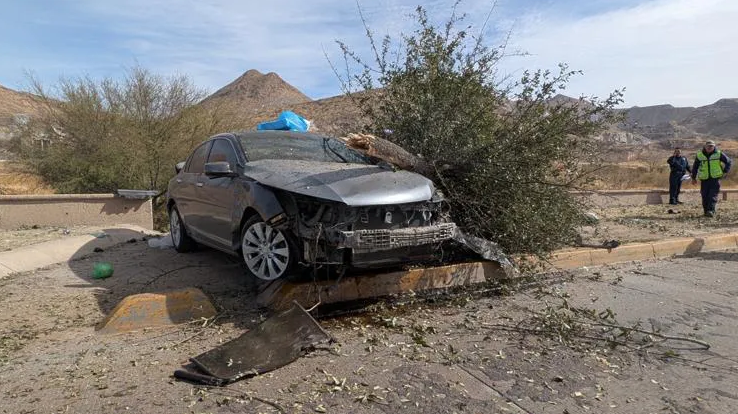 Tras abandonar el carril de circulación, el vehículo subió a la banqueta y se impactó en dos ocasiones contra el muro de contención del río Sacramento. Posteriormente, chocó contra un árbol y finalmente terminó volcado.