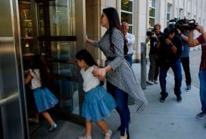 Emma y sus dos pequeñas hijas se reencontraron con «El Chapo» en la sala de la corte. El único espacio donde tienen la oportunidad de verse pero no pueden hablarse ni abrazarse.