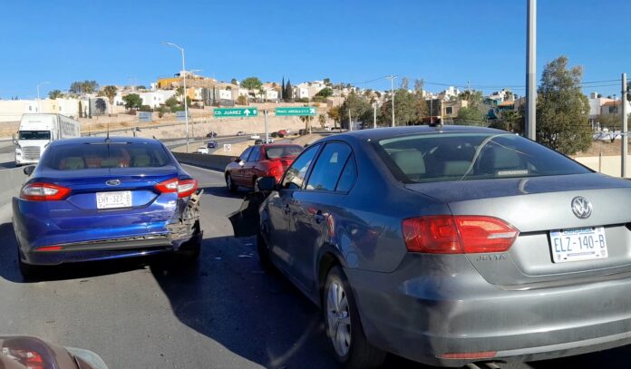Un choque entre cuatro vehículos registrado la mañana de este jueves generó afectaciones en la circulación sobre el Periférico de la Juventud, en Chihuahua. El incidente ocurrió alrededor de las 9:00 horas, a la altura del canal, en una de las zonas con mayor flujo vehicular.