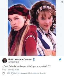 Aunque hay algunos inconformes con el apoyo de Belinda a López Obrador, lo cierto es que el gesto de la cantante no ha pasado inadvertido en redes sociales, donde la postura política de la intérprete ya generó múltiples reacciones: Hay quien se pregunta qué personalidad de Belinda es la que apoya al tabasqueño: