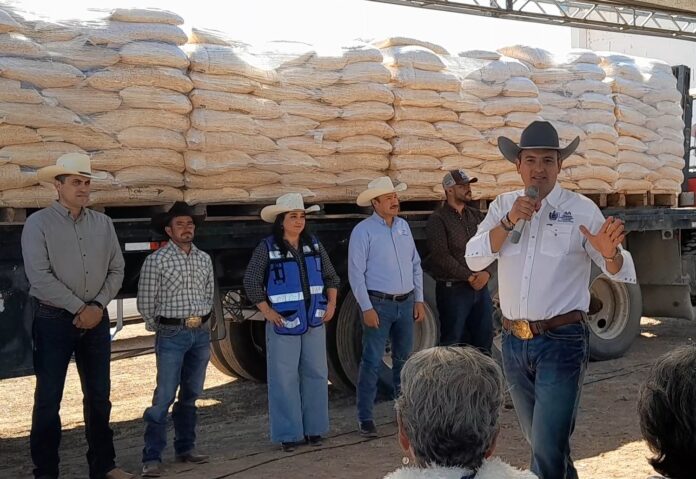 Acompañado por el presidente seccional Jesús Sigala Rodríguez, el edil entregó 241 toneladas de maíz rolado, equivalentes a tres mil sacos, con una inversión superior al millón de pesos. Ambos destacaron que estas acciones forman parte de la política pública enfocada en fortalecer a los productores pecuarios en las comunidades rurales del municipio.