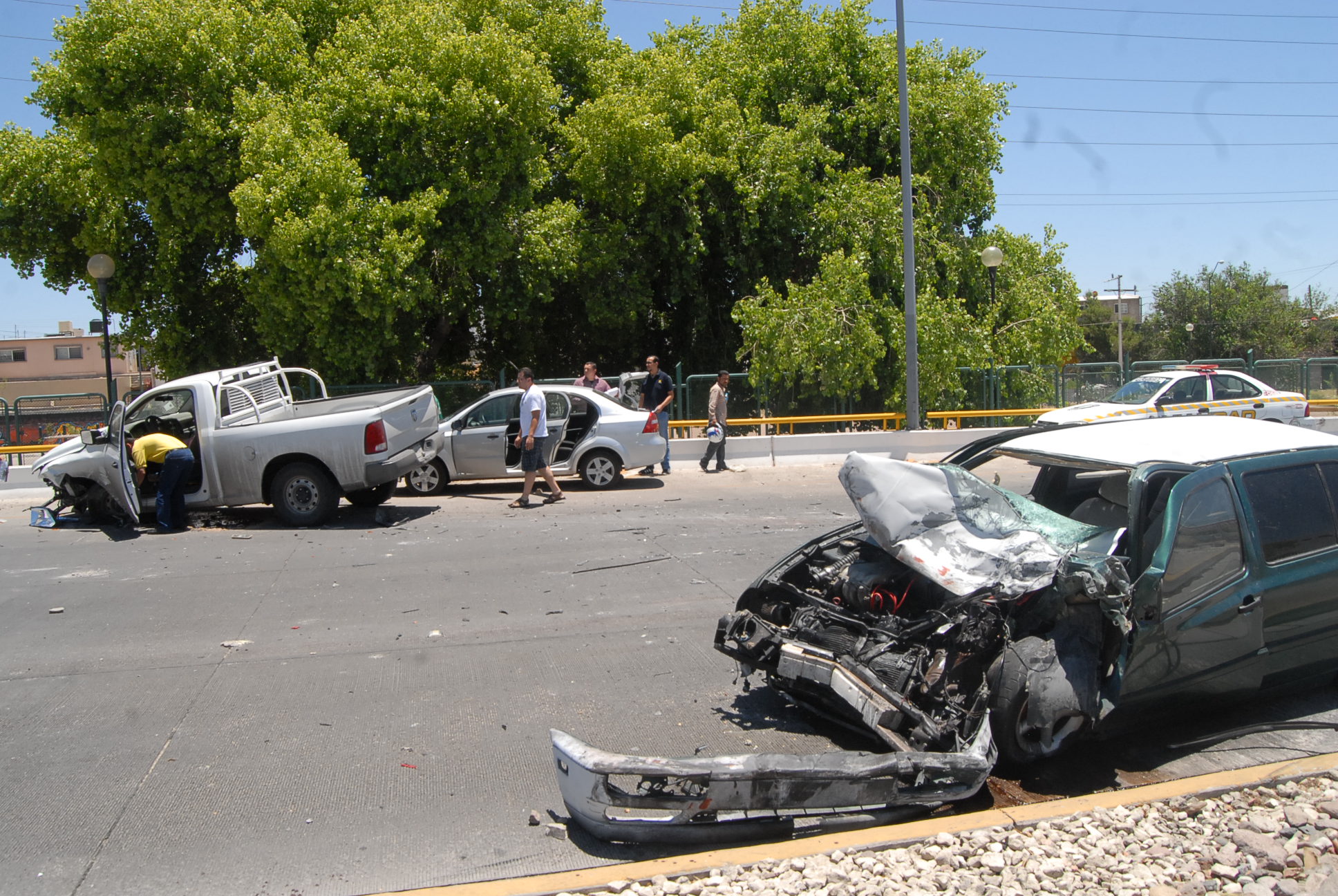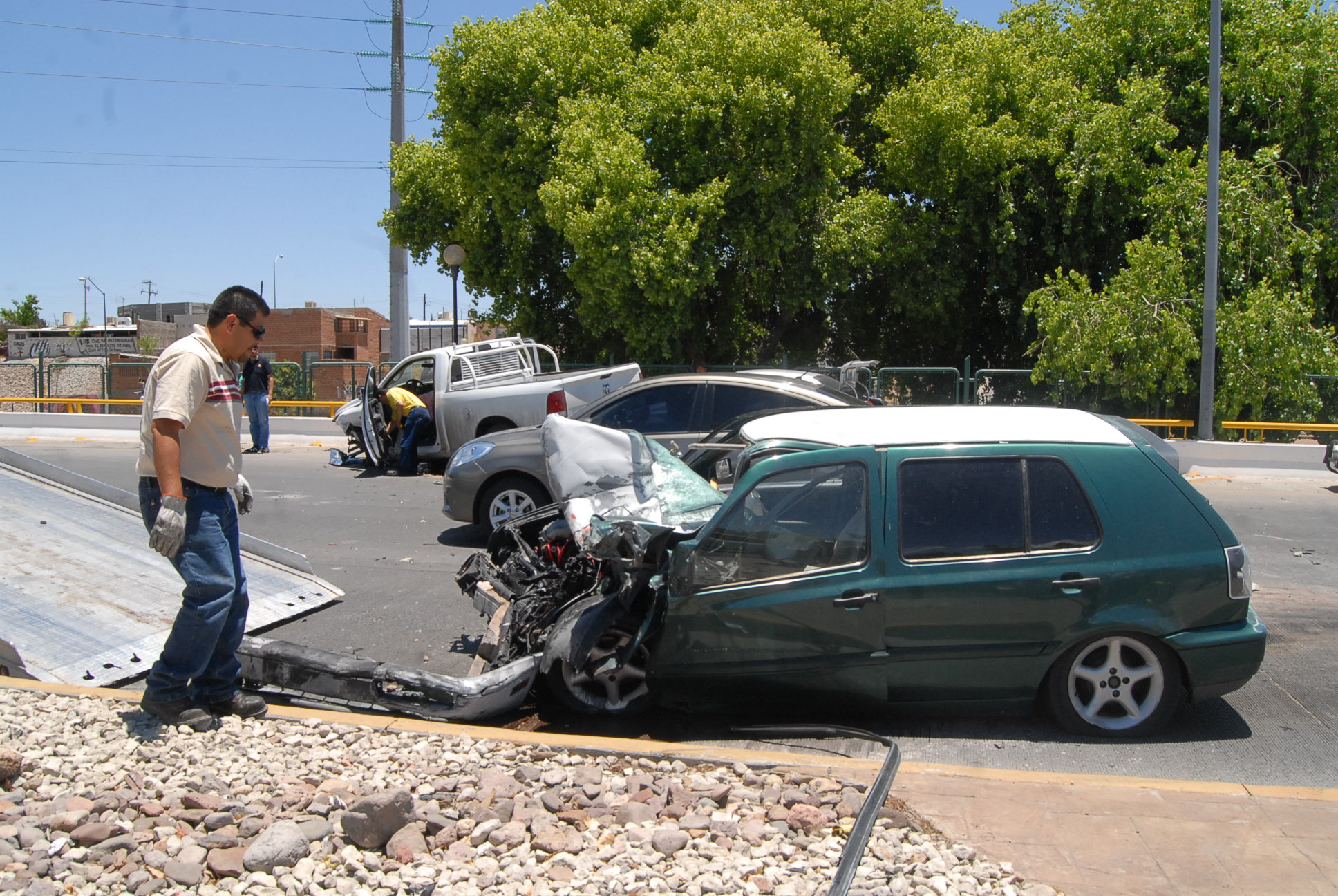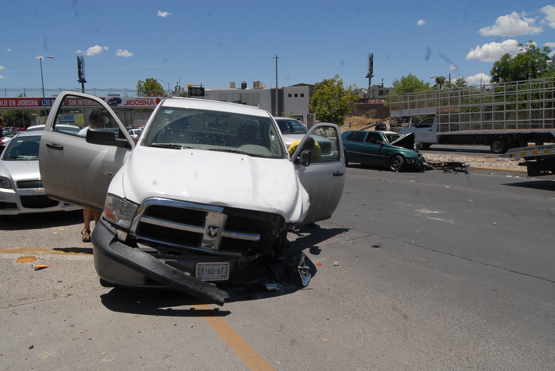 Un auto tipo «Golf» que viajaba por la avenida de La Cantera en el sentido norte sur se impactó de frente contra una pick up del modelo Ram en la curva que se localiza adelante de la calle Washington.