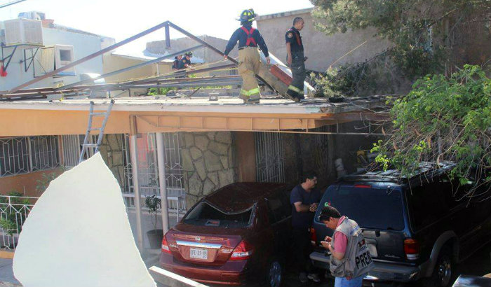 Cae tinaco sobre auto en vivienda de la Colonia Obrera