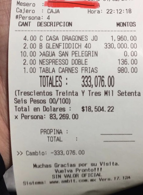 Carlos Slim, el canelo, Bill Clinton y otros pagaron esto en un restaurante de Guadalajara