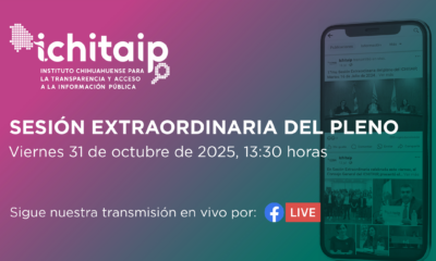 El Instituto Chihuahuense para la Transparencia y Acceso a la Información Pública (ICHITAIP) llevará a cabo este jueves 31 de octubre su Tercera Sesión Extraordinaria del...