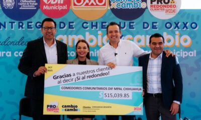 El alcalde de Chihuahua, Marco Bonilla, y la presidenta del DIF Municipal, Karina Olivas, recibieron un cheque por 515 mil 39 pesos por parte de la...