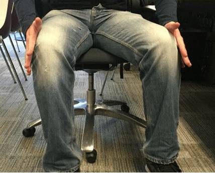 2. Curl isométrico: también se puede realizar de manera alterna o simultánea. Consiste en presionar los talones contra las patas de la silla, con las piernas flexionadas, como si quisiésemos romperlas. Trabajo de isquiotibiales.