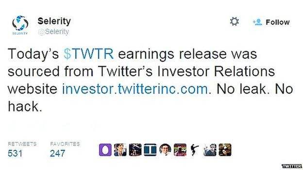 «Selerity, que publicó los tuits iniciales con nuestros resultados, nos informó que los datos estaban disponibles en nuestra página antes del cierre de los mercados», agregó.