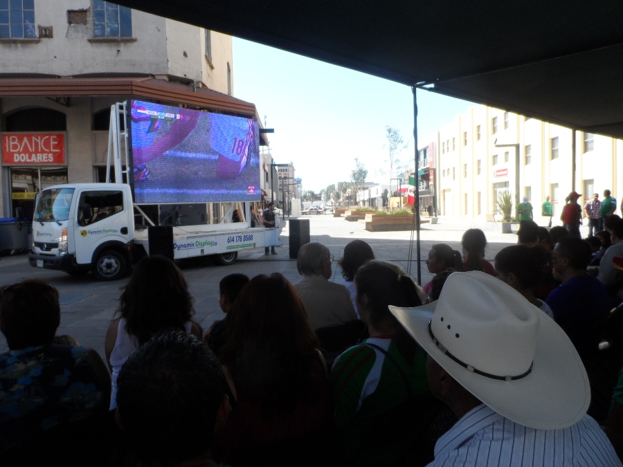 Con una mega pantalla en las afueras de la presidencia Municipal, es como el alcalde de Chihuahua junto con su familia, el gabinete municipal y decenas de Chihuahuenses disfrutaron del partido México contra Holanda, el cual les daría el pase a octavos de final.