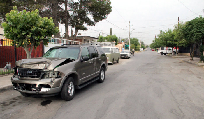El percance ocurrió cuando una camioneta Explorer, color arena y matrículas de circulación EGN-9685 omitió el alto señalado en la intersección, golpeando fuertemente a una camioneta repartidora de El Heraldo de Chihuahua, misma que salió proyectada hacia un poste de Teléfonos de México.