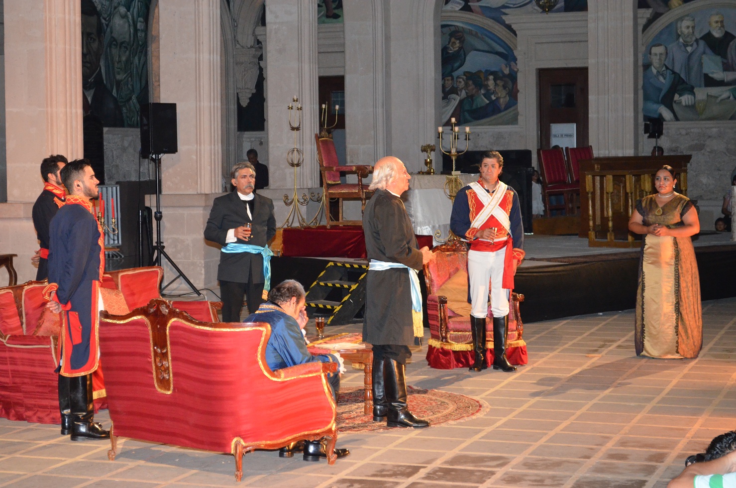La representación teatral estuvo a cargo del grupo independiente de teatro, integrado por 20 actores y 10 militares (pelotón de fusilamiento) bajo la dirección de la maestra Holda Ramírez y con la participación del primer actor Jesús Ramírez Mendoza quien este año cumple 14 años ininterrumpidos de representar el papel del cura Hidalgo.