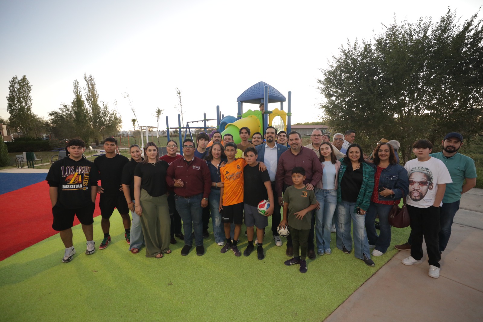 Ciudad Juárez, Chih.– En el marco del programa de Presupuesto Participativo, el presidente municipal Cruz Pérez Cuéllar encabezó este sábado la entrega de los parques Banus y Tres Cantos, espacios completamente rehabilitados en beneficio de los vecinos de los fraccionamientos Banus y Jardines de San Patricio I.