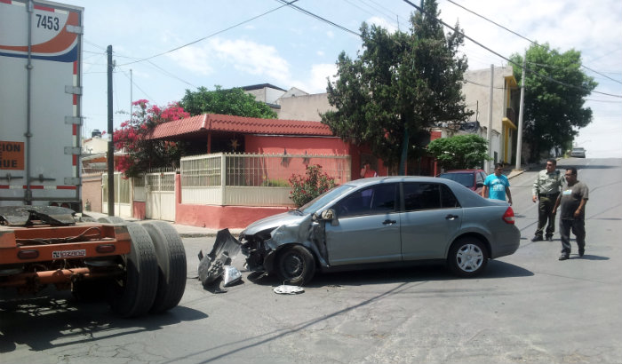 Hoy a mediodía se registró un choque en el cruce de la calle Allende y Miguel Olea, afortunadamente no se registraron personas lesionadas solo cuantiosos daños materiales.