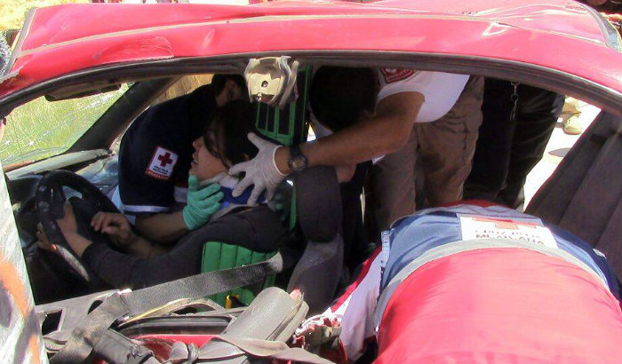 Ella y tres pasajeros más terminaron con lesiones por lo que se solicitó el pronto apoyo de los paramédicos de la Cruz Roja y del Cuerpo de Bomberos.
