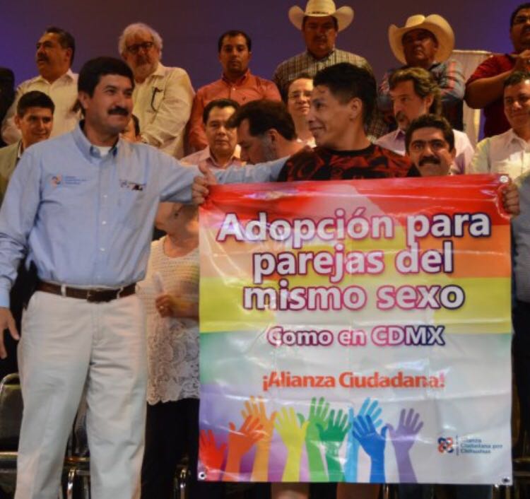 «Con el propósito de dividir y generar la percepción de que la campaña de Javier Corral y Alianza Ciudadana impulsan la agenda de matrimonios y adopción de niños entre personas del mismo sexo, el PRI montó un escenario con un joven portando una manta presuntamente auspiciada por la comunidad lésbica gay, con demandas que ni el PAN ni la Alianza Ciudadana tienen contemplada», dijo José Luévano, presidente del Comité Directivo Estatal del PAN.