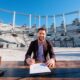 El atleta Uziel Aarón Muñoz Galarza, medallista de plata en el Campeonato Mundial de Atletismo en Tokyo 2025, firmó el Lienzo de los Atletas Olímpicos, en...