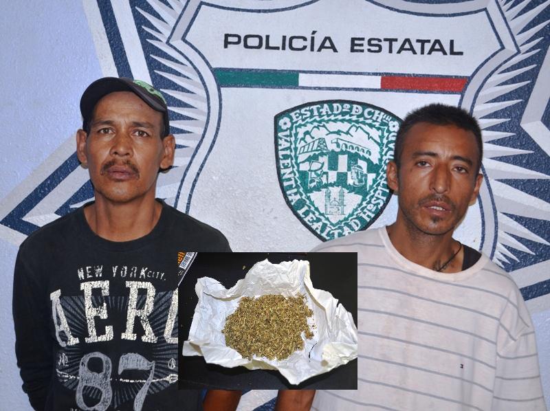 En las afueras de la Central de Abasto el en boulevar Juan Pablo II y calle 55, se ubico en plena faena de compra venta a ALEJANDRO GARCÍA PERALTA DE 40 AÑOS Y A JOSÉ GUADALUPE HERNÁNDEZ RODRÍGUEZ DE 40, a quienes les aseguraron un paquete con 32 gramos de hierba al parecer marihuana.