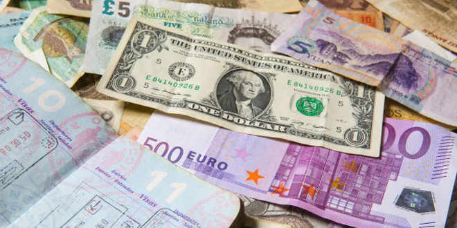World currencies - including US Dollars, Euros, Chinese Yuan, British Pounds