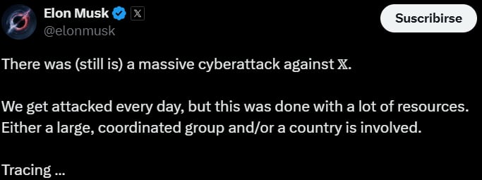Elon Musk denuncia ciberataque masivo contra X