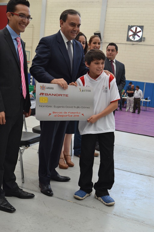El Presidente Municipal Javier Garfio, acompañado por su esposa, Aidé Armendáriz, realizó la entrega de 447 becas para los y las  deportistas destacados en sus  diferentes categorías, esto durante la  ceremonia realizada en las instalaciones del  Gimnasio Tricentenario.