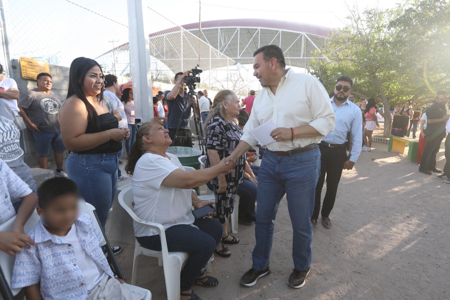 El Presidente Municipal, Cruz Pérez Cuéllar, realizó la entrega de trabajos de rehabilitación a los usuarios del parque El Encanto, situado en la calle Año 1993 del Infonavit Salvárcar.
