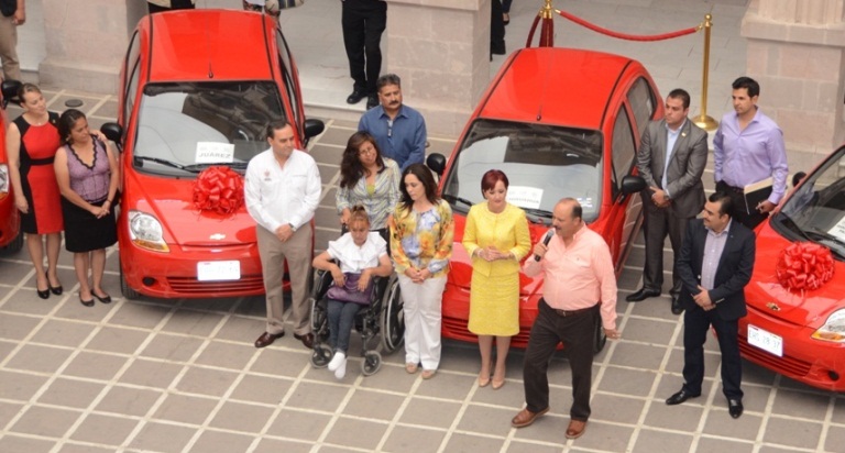 El Gobernador Cesar Duarte Jáquez en compañía de la presidenta del DIF estatal, Bertha Gómez de Duarte, hicieron entrega de los 11 carros Matiz de reciente modelo con un valor superior al millón de pesos, a mujeres que resultaron ganadoras en el Sorteo del Día de la Madres que fueron rifados en varios municipios.