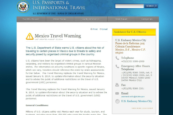 El Departamento de Estado de Estados Unidos renovó hoy su advertencia sobre el peligro de viajar a ciertos lugares en México debido a la «amenaza para la seguridad» que suponen los grupos de crimen organizado en el país.