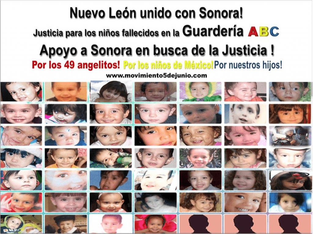 Al cumplirse el cuarto año de la muerte de 49 niños de la guardería ABC de Hermosillo, Sonora diversos grupos sociales y artísticos realizaron una marcha exigiendo justicia.