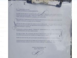 También pidió disculpas por quitarse la vida frente a la estación de Policía, pero decidió hacerlo ahí para que no se culpara a nadie de su muerte y que entreguen de inmediato su cuerpo a su esposa sin realizarle autopsia «si eso fuera posible»