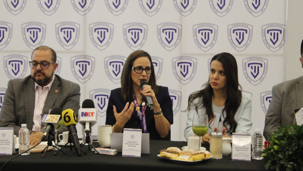 Invitado por el Tribunal Superior de Justicia del Estado (TSJE), Facio Guzmán asistió al evento encabezado por la magistrada presidenta Marcela Herrera Sandoval, el magistrado presidente del Tribunal de Disciplina Judicial, Francisco Acosta Molina, y el magistrado Adalberto Vences Baca, quien moderó el tema central del encuentro.