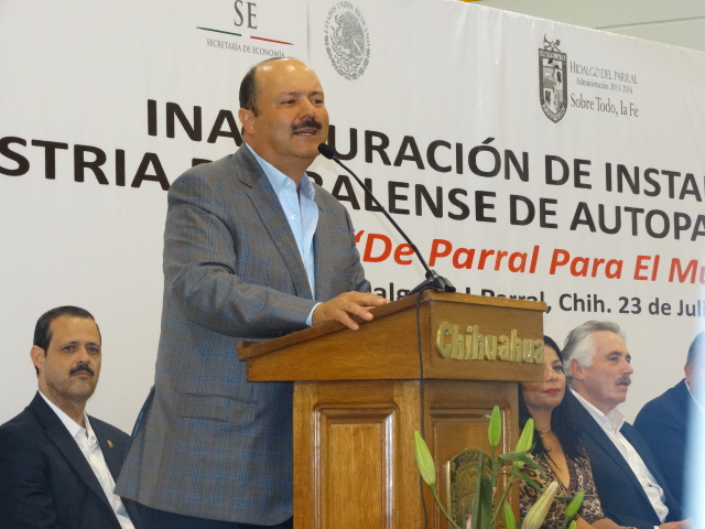 La empresa Industrial Parral de Autopartes, primera en su tipo en el país, la cual tuvo una inversión de 450 millones de pesos y que generará 500 nuevos empleos, fue inaugurada por el Gobernador César Duarte Jáquez, y el Secretario de Economía del Gobierno Federal, Ildefonso Guajardo Villarreal el miércoles por la noche.