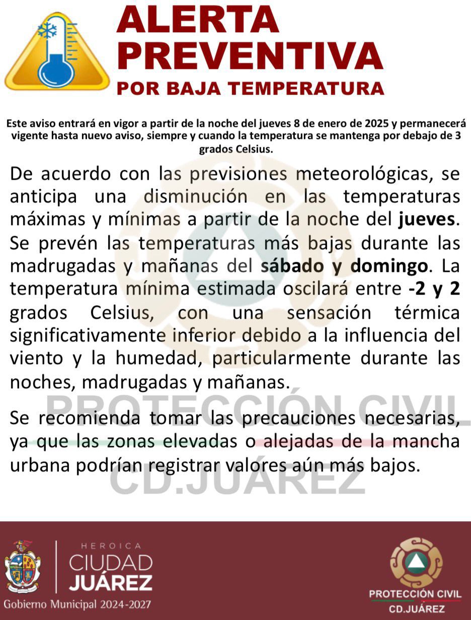 Juárez se congela: activan alerta preventiva por temperaturas bajo cero desde este jueves