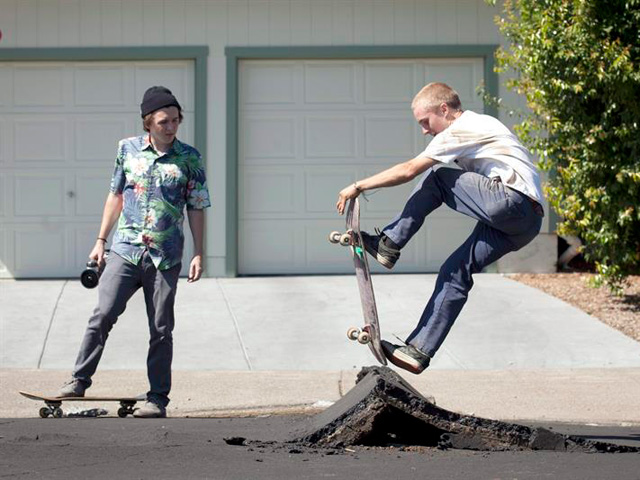 Sin perder el tiempo y antes que las autoridades reparen las vías afectadas, varios jóvenes vienen dando rienda suelta a su espíritu «skater» realizando piruetas sobre las inesperadas rampas que el sismo ha formado en el pavimento.