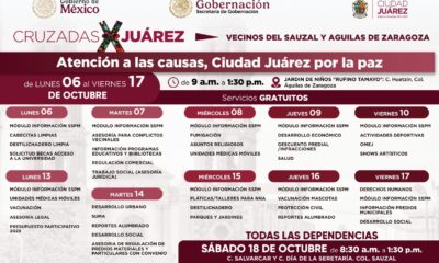 El próximo sábado 18 de octubre se llevará a cabo el programa “Cruzadas por Juárez, Atención a las Causas, Ciudad Juárez por la Paz”, en la...