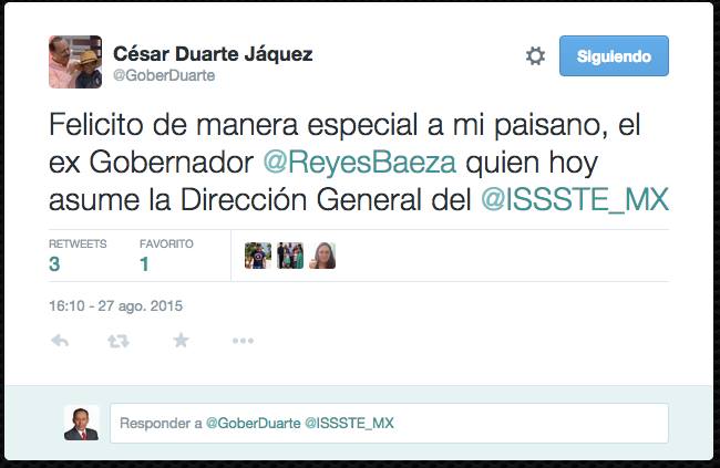 Por su parte el ex gobernador de Chihuahua se limitó a subir una imagen en twitter con la leyenda: «Estamos listos señor presidente @EPN»