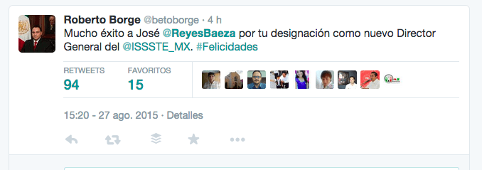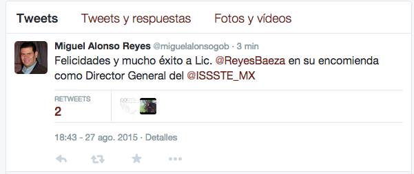Muchos seguidores de José Reyes Baeza no tardaron en felicitar a la publicación tras la toma de protesta como director del ISSSTE. Compañeros de profesión, instituciones, gobernantes, políticos y otros medios trasladaron su cariño en forma de mensajes al poco tiempo de conocerse la noticia, la cantidad de menciones lo hicieron Trending Topic.