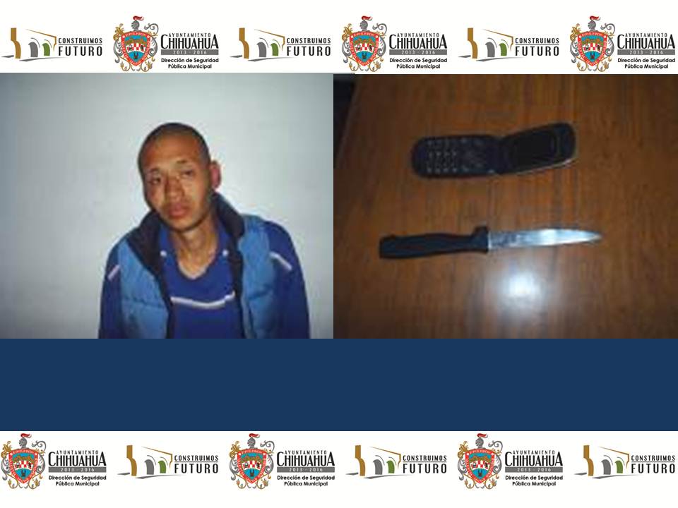 Elementos de la Dirección de Seguridad Pública Municipal de Chihuahua, aprehendieron a quien dijo llamarse Edgar Alejandro Ponce González, como probable responsable del delito de robo a casa habitación, ubicada en las inmediaciones de las calles Obrera y 46 ½ de la colonia Unidad Proletaria.