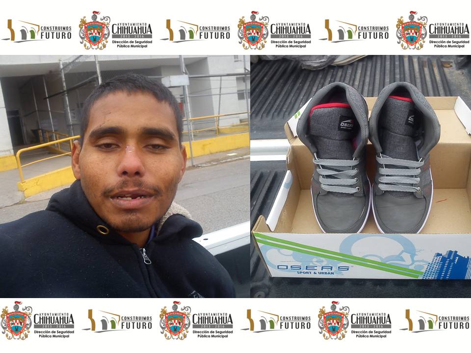 Arrestan elementos de la Policía Municipal de Chihuahua a quien dijo llamarse José De La Luz Vázquez Mata de 27 años de edad, por el probable delito de robo sin violencia en perjuicio de un vendedor de calzado, en hechos ocurridos en las calles Minas de San Agustín cruce con Avenida de las Industrias de la colonia El Porvenir.