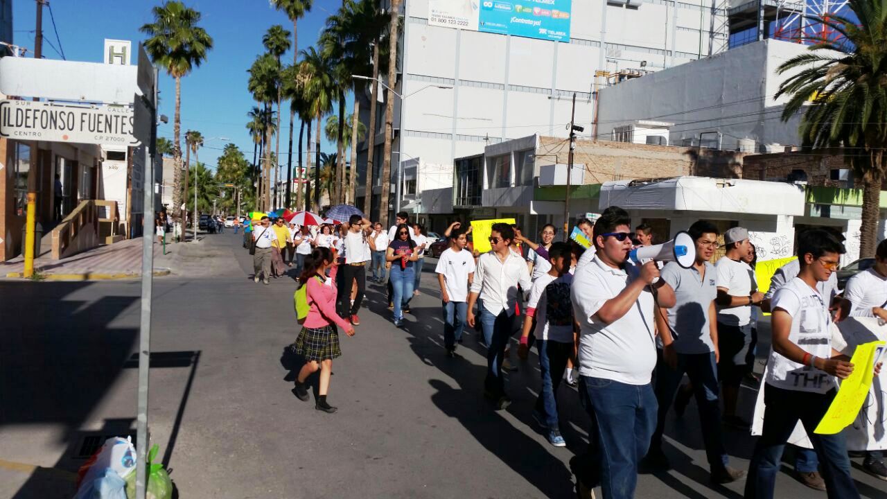 La marcha y manifestación de los jóvenes fue encabeza por José Antonio Sonora, estudiante del cuarto semestre de bachillerato.