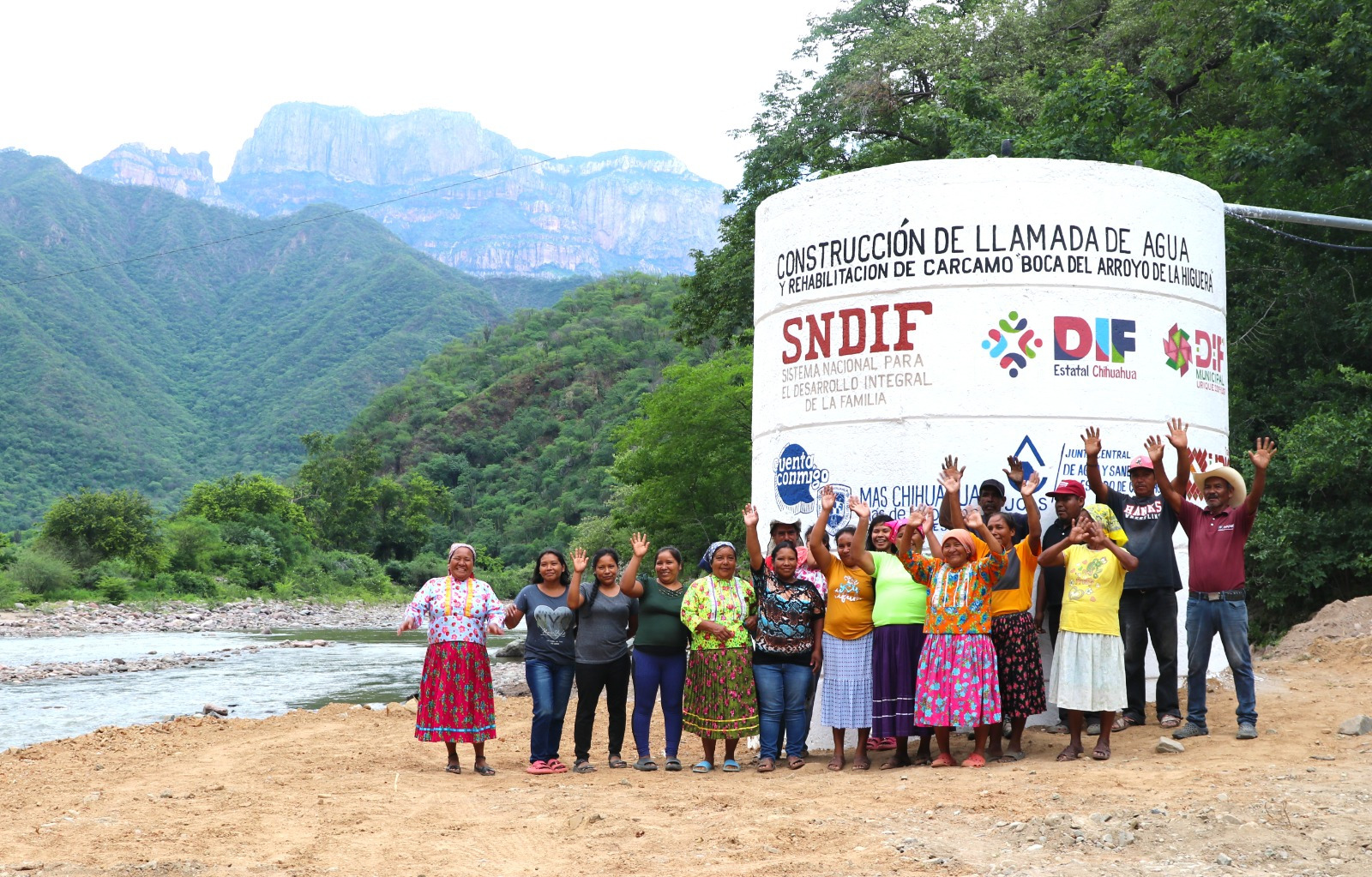 Luego de tres años de trabajo con habitantes de Boca del Arroyo de la Higuera, municipio de Urique, el Gobierno del Estado, a través del DIF Estatal, entregó la obra de rehabilitación del cárcamo de agua para que 22 familias indígenas de la localidad cuenten con abasto hasta sus viviendas, sin tener que acarrear desde el rio.
