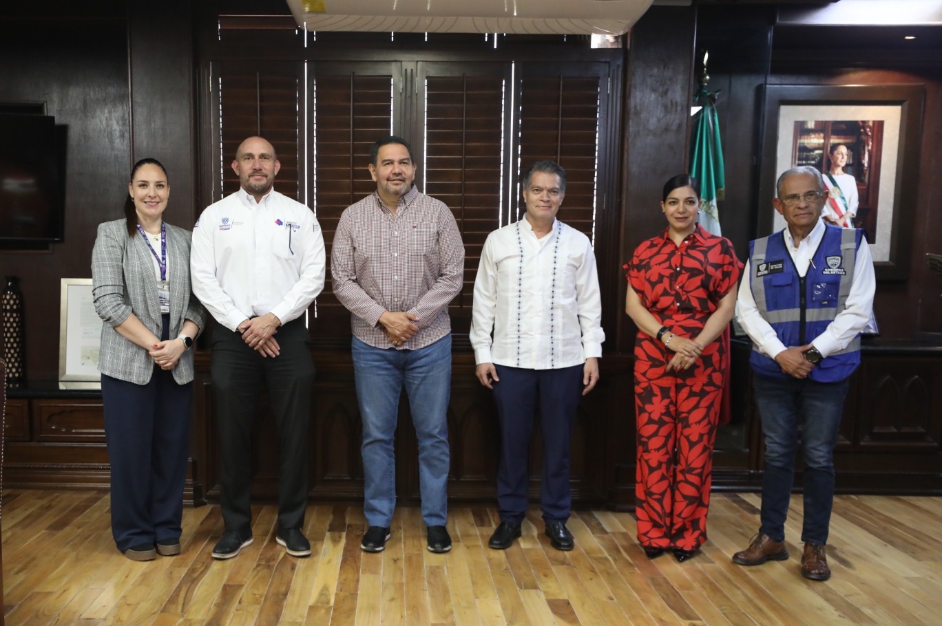 El alcalde recibió en su despacho a Ramiro López Elizalde, subsecretario de Políticas de Salud y Bienestar Poblacional de la Secretaría de Salud del Gobierno de México; Gilberto Baeza Mendoza, Secretario de Salud del Estado de Chihuahua; Adriana Anylú Yáñez Díaz, coordinadora Técnica de la Secretaría de Salud de Chihuahua; Daphne Santana Fernández, directora de Salud Pública Municipal y Rogelio Covarrubias Gil Lamadrid, director del Distrito de Salud del Estado en Ciudad Juárez