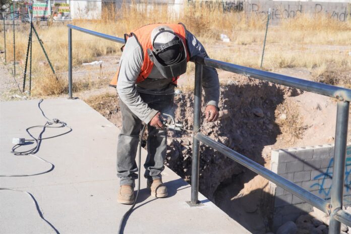 El Gobierno Municipal de Chihuahua avanza en los últimos trabajos de remediación del puente vehicular y peatonal ubicado en el cruce de avenida Río Colorado y calle Río Uruguay, en la colonia Riberas del Sacramento, con el objetivo de reforzar la seguridad y movilidad en la zona.