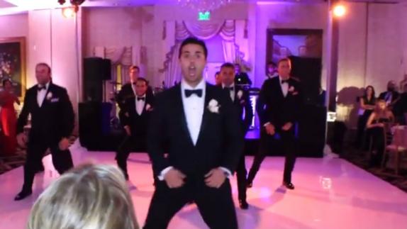 Novio hace divertido baile para su futura esposa en la boda