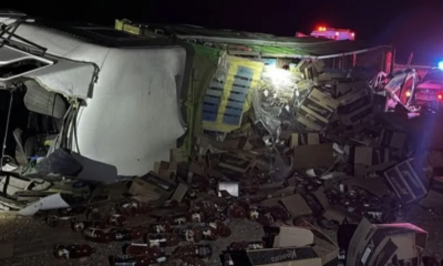 Un tráiler que transportaba jugo de tomate con caldo de camarón de la marca Kermato se volcó durante la madrugada de este jueves en la carretera...