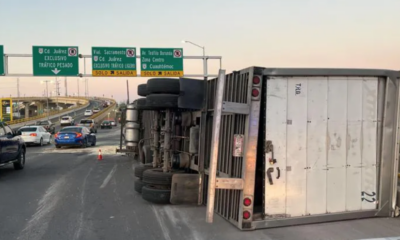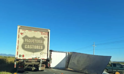 Un tráiler que transportaba aproximadamente 26 toneladas de carne volcó este jueves en la carretera Aldama–Chihuahua, a la altura del puente que conecta con el Canal,...